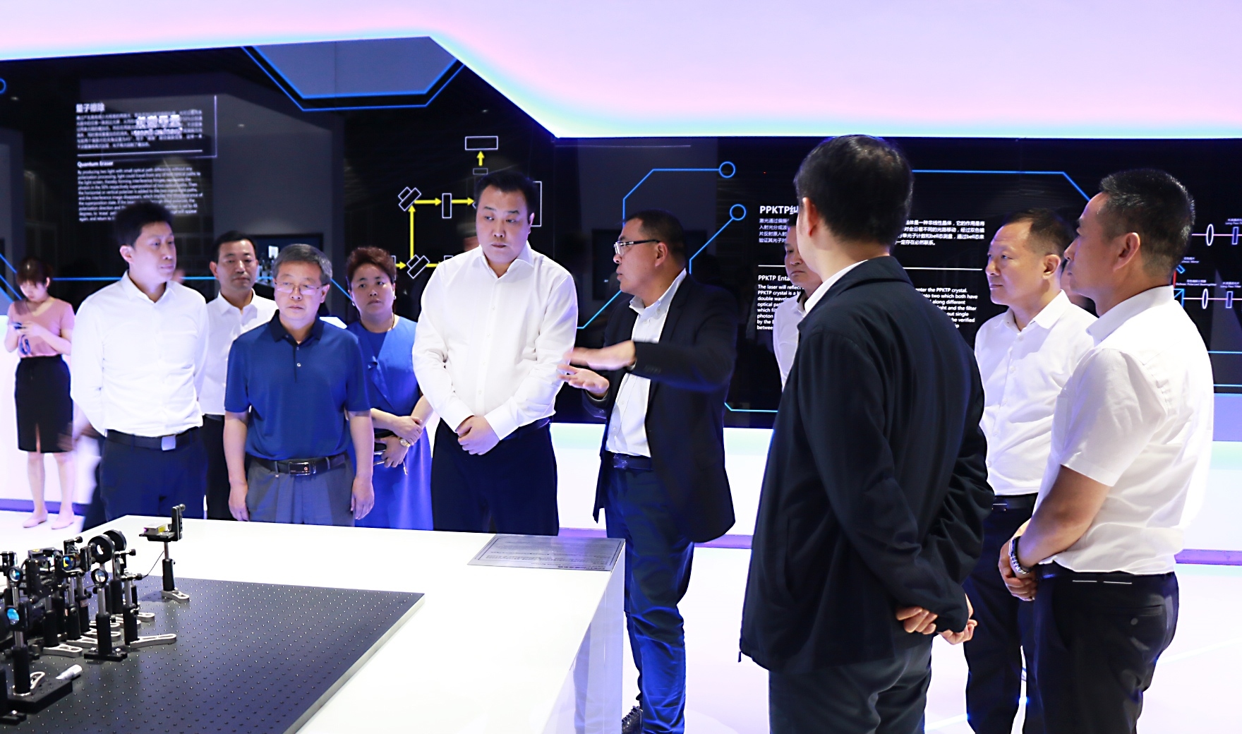王莉明董事長(zhǎng)在量子科技展示中心聽(tīng)取匯報(bào)