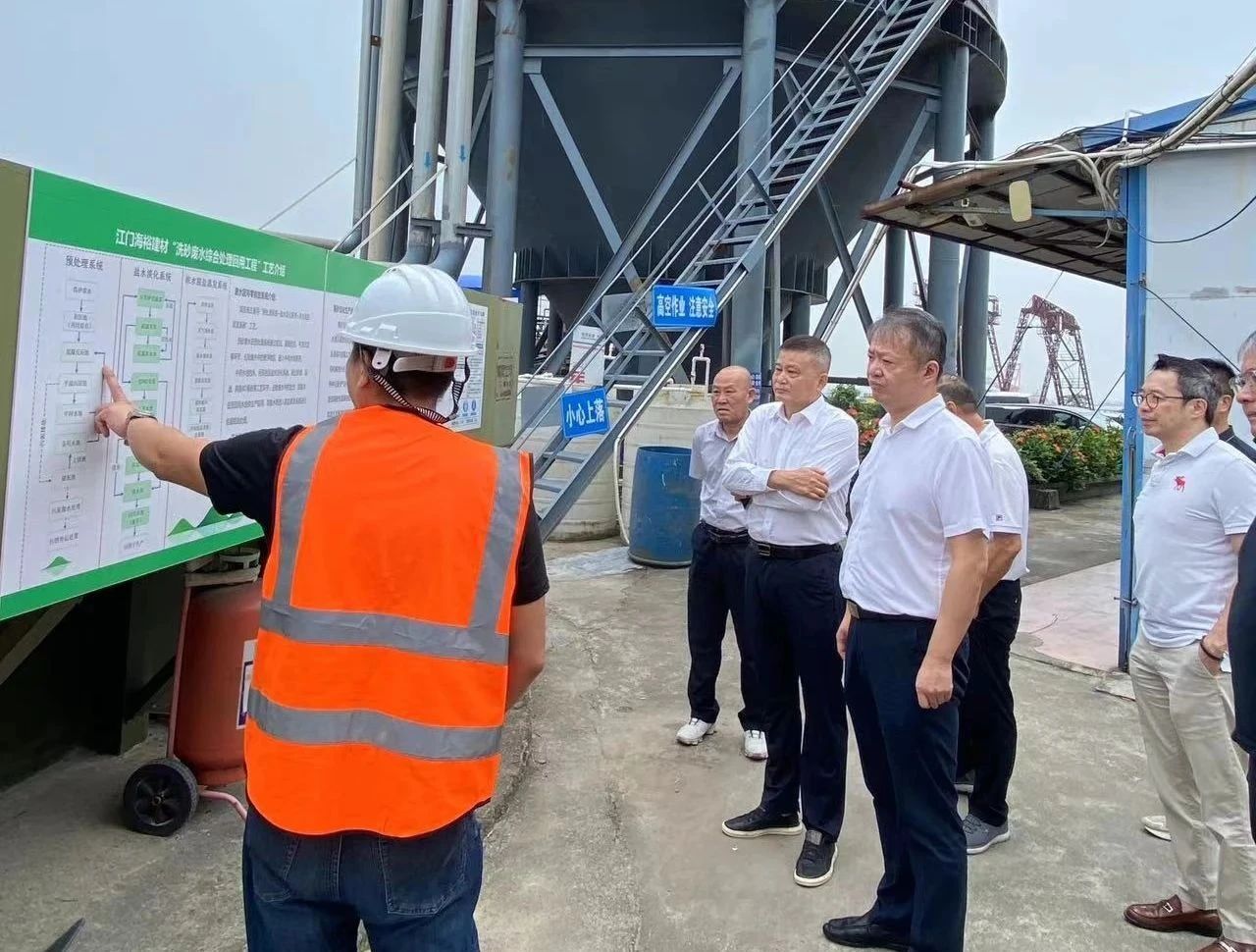 9月14日,集團副總經理魯珂、中能建礦業公司董事長陳克生赴江門新會區調研新型海砂淡化產線。江門華建投資有限公司董事長梁柏林、董事游海建陪同魯珂一行參觀調研生產現場,并匯報了相關經營狀況。